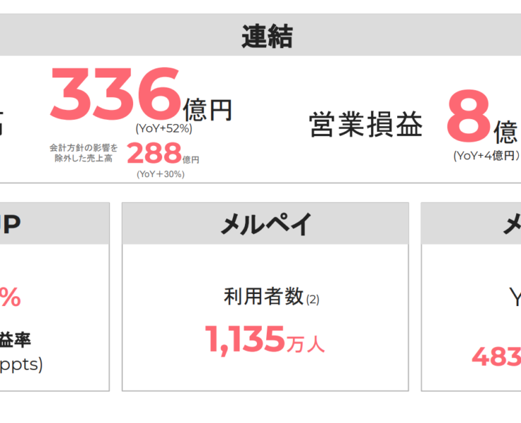 フリマアプリのメルカリ、1Q 7-9月純利△1億1,900万円。メルカリUSの流通総額が減少し、赤字転落
