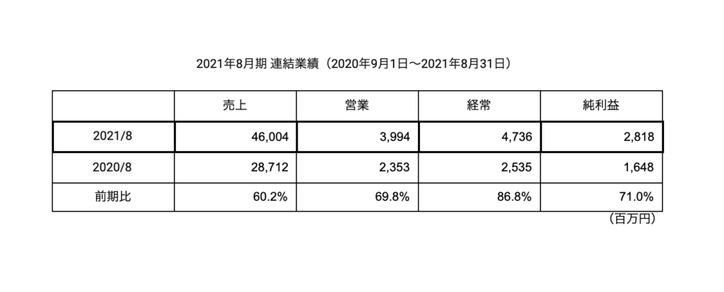 ソフトウェア品質テスト事業のSHIFT、経常 86.8%増の47億3,600万円。営業力強化で顧客基盤が拡大 by TG News Editor 10/13/2021 ソフトウェアの品質保証・テスト事業を展開するSHIFT<3697> が12日に発表した2021 年8月期通期の連結業績は、売上高が前年同期比 60.2%増となる460億400万円と伸長し、経常利益は前年同期比 86.8%増の47億3,600万円に拡大した。営業力の強化で顧客基盤が拡大したことが奏功し、売上が伸びた。また、新型コロナウイルス感染症拡大の影響に伴う「雇用調整助成金の特例措置」による助成金の交付などで利益を押し上げ、売上、利益ともに予想を上回った。 Data Base SHIFT Tags #業績