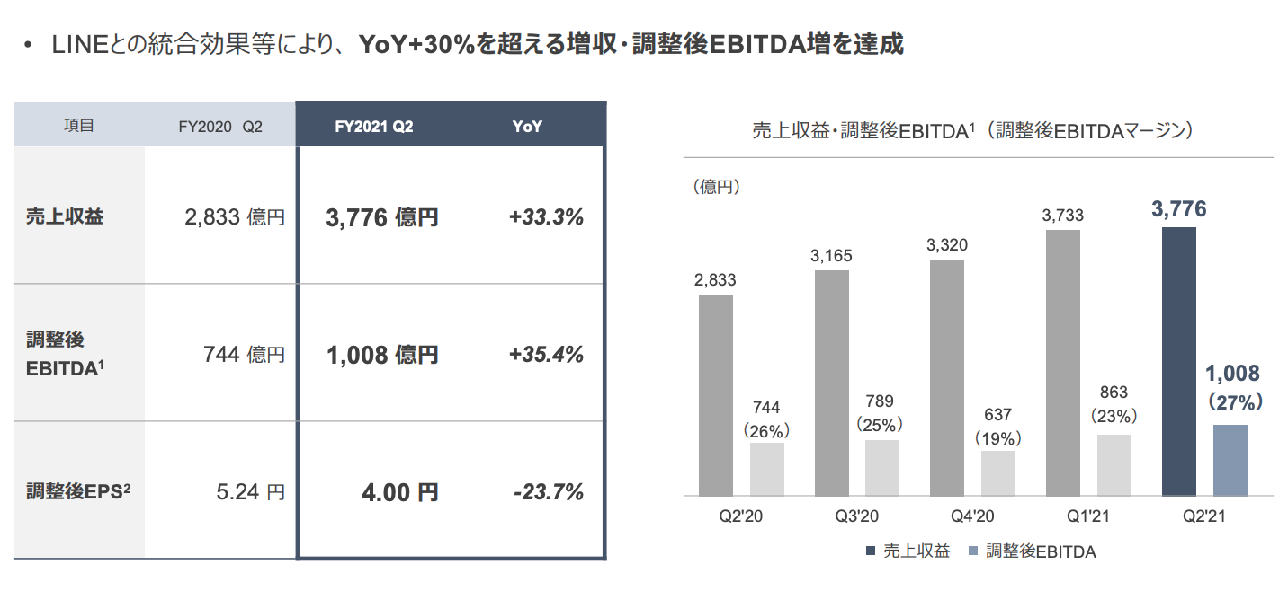 Zホールディングス、2Q売上34.8%増7,509億円。LINEと統合効果で過去最高 by TG News Editor 11/03/2021 Zホールディングスが2日に発表した2022年3月期 2Q 連結業績は、売上収益が前期比34.8%増の7,509億6,200万円と好調に推移し、過去最高だった。LINEとの経営統合に加え、広告の需要回復など広告関連売上収益が大幅に伸長したほか、コマース事業、Fintech領域の売上も成長した。 GMOグループへ売却したワイジェイFXの株式売却益などで利益も押し上げ、増収増益だった。 Data Base Zホールディングス株式会社 Tags #業績