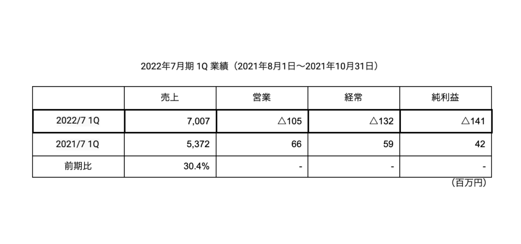 印刷、物流のシェアリングプラットフォーム運営のラクスル<4384>が9日に発表した2022年7月期 1Q の業績は純利益が1億4,100万円の赤字だった。主力の印刷シェアリングプラットフォーム「ラクスル」は伸長。同事業の売上高は前期比23.3%増の54億6,100万円に拡大した。一方、広告プラットフォーム「ノバセル」が2,500万円の赤字へ転落したほか、物流シェアリングプラットフォーム「ハコベル」が緊急事態宣言などの影響や、積極的な広告宣伝投資などで7,900万円の損失を出した。