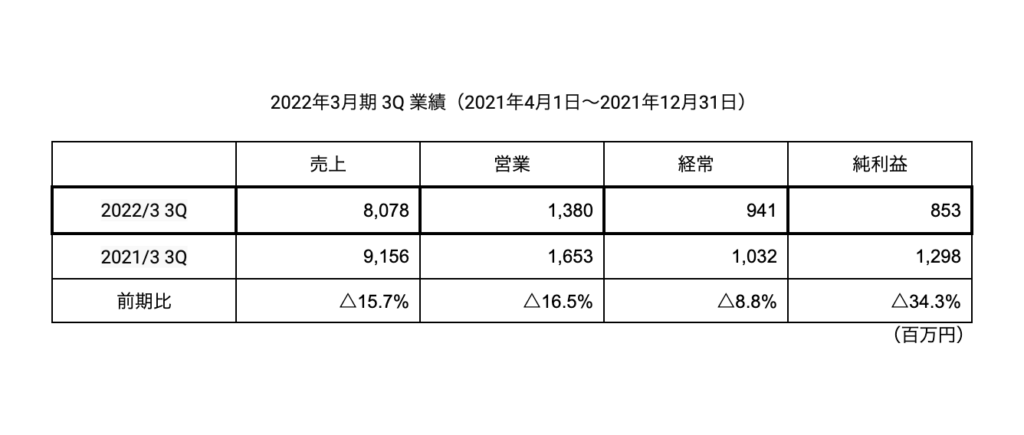 スマホゲームのドリコム、3Q純利益△34.3%。運用中ゲームタイトルのクローズ、広告事業撤退など。4Q新規タイトルのヒット目指す by TG News Editor 01/28/2022 スマートフォン向けサービスを手掛けるドリコム<3793>が27日に発表した2022年3月期3Q連結の純利益は前期比△34.3%減の8億5,300万円だった。複数の運用中ゲームタイトルのクローズ、広告事業からの撤退、オフィス退去に伴う特別損失が発生などにより減収、減益に終わった。今後も引き続き主力のゲーム事業の採算性向上に取り組む方針で、不採算ゲームタイトルの黒字転換、4Q以降に予定している複数の新規タイトルのヒットに向けサービスの作りこみ、マーケティングに注力していく。 Data Base ドリコム Tags #ゲーム #モバイルゲーム #業績