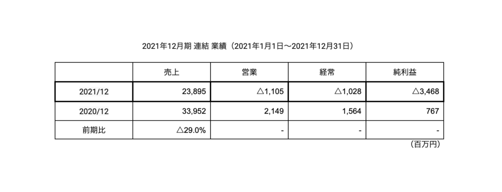 モバイルゲームのKLab<3656>が9日に発表した2021年12月期 連結の業績は、最終利益が前年同期7億6,700万円から一転△34億6,400万円の大幅赤字に陥った。新作タイトルが売上に繋がらず、主力ゲームの既存タイトル「キャプテン翼」や「BLEACH Brave Souls」「ラブライブ!スクールアイドルフェスティバル」など、大半のタイトルが競争環境の激化で前年を下回り、減衰率が想定を上回って推移した。改善施策も大きな効果に繋がらず、業績が悪化した。また、2021年4月に連結子会社化したグローバルギアの株式取得や投資先への出資などで現預金が前期81億円から38億円へ減少。3Qには経営陣が業績悪化の責任をとり、12月から3月まで役員報酬を代表取締役20%、取締役10%減額する方針を発表した。