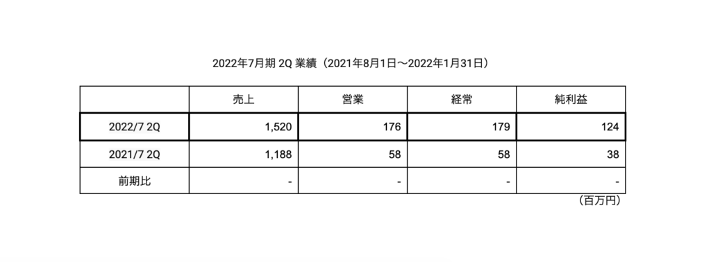 はてなブログなどのインターネットサービスを展開するはてな<3930>が2月28日発表した2022年7月期 2Q 売上高は対予想進捗率 49.6%の15億2,000万円、最終利益が同進捗率 63.7%の1億2,400万円と堅調に推移した。企業向けの受託開発や運営などを行うテクノロジーソリューション事業が増収を牽引した。Webマンガサービス向けマンガビューワ「GigaViewer for Web」が、2Qにおいて、小学館「サンデーうぇぶり」と講談社「&Sofa(アンドソファ)」の2サービスへ新たに搭載され、合計14社、搭載累計17サービスとなり売上が増加したほか、複数の受託開発案件の納品が完了、保守運用サービスにおいても、運用案件数が積み上がり、売上成長に繋がった。