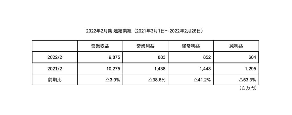 ファッションECのロコンド、最終利益△53.3%減。D2C取扱高減少、倉庫拡張などコスト増加で減収減益 by TG News Editor 04/15/2022 ファッションECサイトやD2Cプラットフォーム事業などを手掛けるロコンド<3558>が14日に発表した2022年2月期業の績は最終利益が前期比 △53.3%減の6億400万円となり、減収減益だった。D2Cブランド商品の売上構成割合が低下し、売上高が落ち込んだ。利益率の高いD2Cの取扱高減少と倉庫拡張などによるコ スト増加が利益を圧迫した。 Data Base ロコンド Tags #D2C #EC #業績 0 Comments