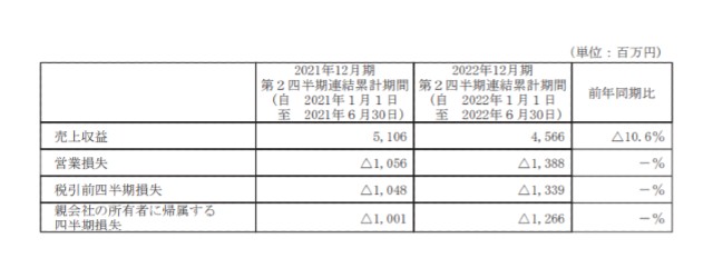 レシピサイト運営のクックパッド<2193>が12日に発表した2022年12月期2Q連結の業績は、営業損失が△13億8,800万円に拡大した。前年同期は△10億5,600万円の赤字だった。主力の国内レシピサービスの会員売上と広告売上の減少が影響した。有料のプレミアム会員数は前期末 183.2万人から173.4万人へ減少。これにより会員売上は前期比8.0%減の32億6,600万円に落ち込んだ。広告売上もディスプレイ広告、ネットワーク広告の売上が減少し、前期比△27.9%減の7億9,000万円と振るわなかった。