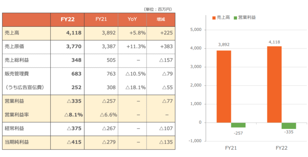 スマホゲーム開発 enish、最終損失△2.7億→△4.1億円赤字拡大。既存ネイティブアプリ不調、新タイトル延期など by TG News Editor 02/12/2023 スマートフォンゲーム開発のenish<3667 >が10日に発表した2022年12月期連結業績は最終損失が前期△2億7,900万円から△4億1,500万円の赤字に悪化した。既存ネイティブアプリが振るわず、新タイトル「つなキャン」のリリースも延期し、開発コストが先行。加えて、退職従業員の転職支援金など子会社整理損3,500万円の特別損失を計上。赤字が膨らんだ。 Data Base enish Tags #ブロックチェーンゲーム #モバイルゲーム #業績