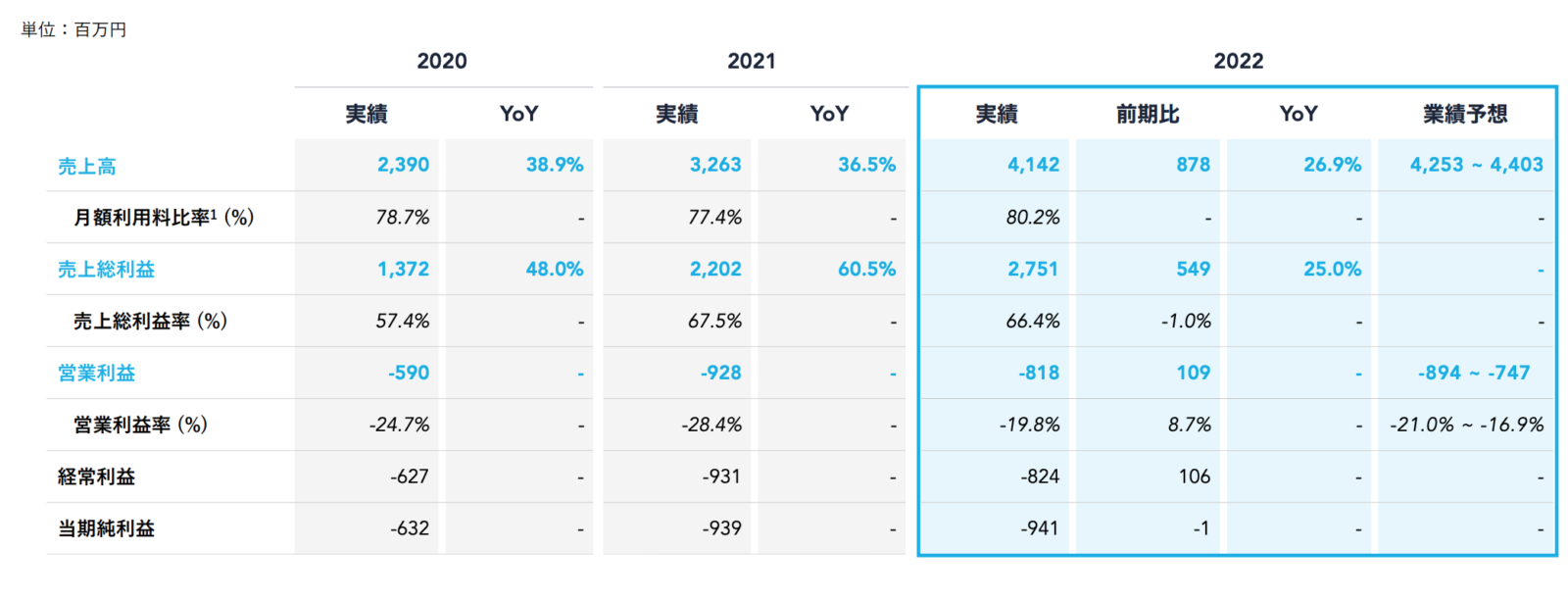 ノーコードアプリ開発プラットフォームのヤプリ、最終損失△9.4億円赤字。売上27%増も先行投資回収至らず。累計1.4億DL突破 by TG News Editor 02/15/2023 プログラミング不要のスマホアプリ開発プラットフォーム「Yappli」を展開するヤプリ<4168>が13日に発表した2022年12月期 連結業績は、最終損失が△9億4,100万円の赤字だった。売上高は前期比26.9%増の41億4,200万円と伸長したが、人件費や広告宣伝費などの先行投資の回収には至らなかった。加えて、本社オフィスの一部解約によるコスト1億700万円の特別損失が発生、利益を圧迫した。2022年12月末時点の累計ダウンロード数は1億4,000万、月間アクティブユーザー(MAU)は2,700万を突破した。 Data Base ヤプリ Tags #アプリ開発プラットフォーム #スマートフォンアプリ #ノーコード #業績
