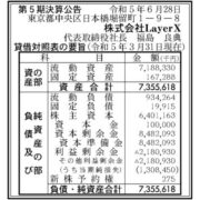 Gunosy創業 福島氏率いるLayerX、23年3月期純利益△7億→△13億円赤字拡大。利益剰余金△21億円。23年シリーズA82億円調達