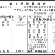 エプソングループCVC エプソンクロスインベストメント、純損失△1.6億円→△1.9億円赤字拡大。総額50億円ファンド運用