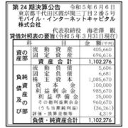 老舗VC モバイル・インターネットキャピタル、第24期純利益7.2千万円→3.6千万円。利益剰余金9.8億円。投資先IPO数23社