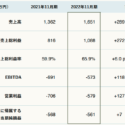 生体認証ソリューションELEMENTS上場後初決算、売上21.3%増、営業損失△7億円→△5.7億円。売上総利益改善、増収増益