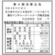 ライフサイエンス特化VC 新生キャピタルパートナーズ、純利益1,209.5万円。総額101億円 New Life Science 1号ファンド運営