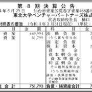 東北大学ベンチャーパートナーズ、2022年3月期純利益 3,928.2万円→ 8,018.3万円。総額78億円 THVP-2号ファンド運営