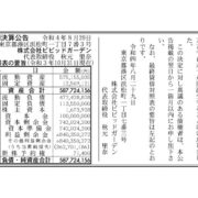 食材直売サイト「食べチョク」運営 ビビッドガーデン、純損失△3.7億円→△3.6億円。利益余剰金 △8.4億円