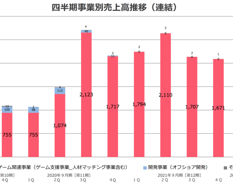 ゲーム開発のオルトプラス、2Q営業利益△4.1億円赤字。新規リリースが無く、運営タイトル長期化など課金収入減少
