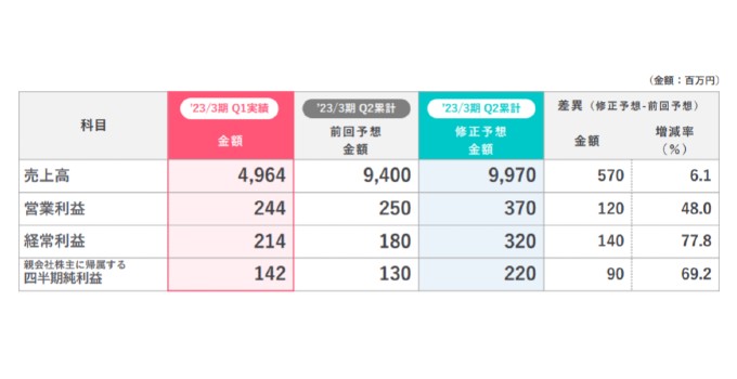 ぐるなび、2023年3月期最終損失△33億円→△24億円へ上方修正。外注費減、特別利益計上など赤字縮小。4Q黒字転換へ