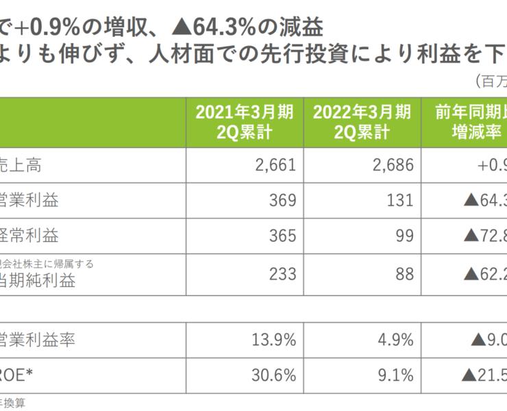 オンライン英会話のレアジョブ、2Q経常利益△72.8%減。人材の先行投資や広告宣伝費などのコストが増加
