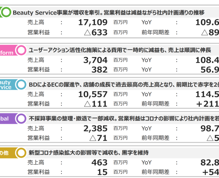 @cosmeのアイスタイル、1Q営業損失△2.2億円。4回目緊急事態宣言で店舗が減収。不採算事業の整理・撤退、ほか