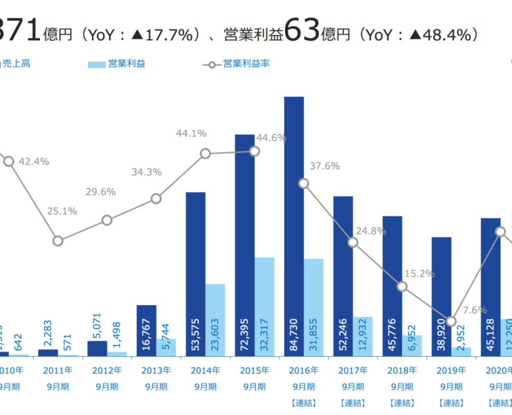 スマホゲームのコロプラ、最終利益△61.8%減。主力ゲーム事業が減収減益。特許権侵害の和解金33億円計上