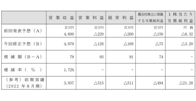 スキルマーケット ココナラ、23年8月期通期営業損失△2.2億円→△1.2億円 上方修正。費用削減が奏功、赤字縮小