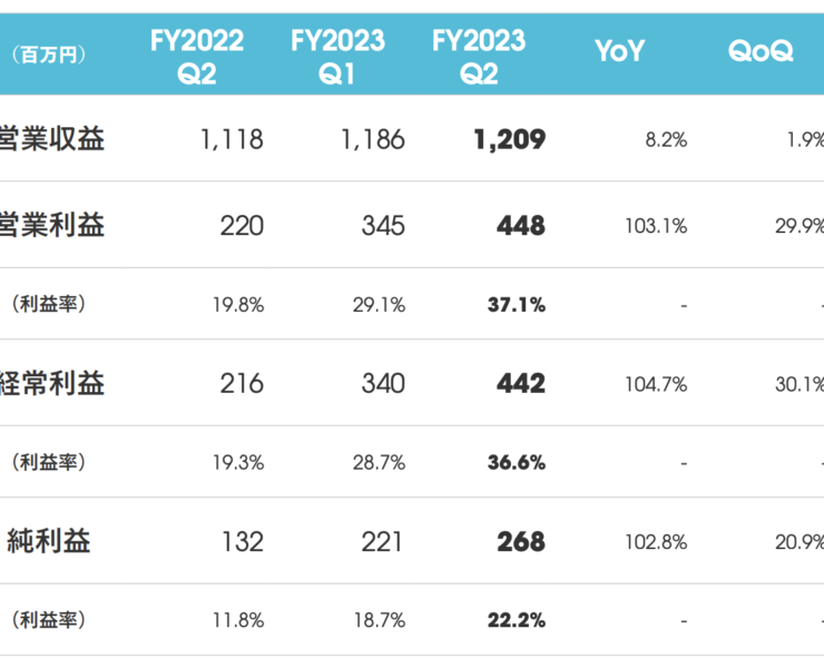 リブセンス、2Q売上24%増27.8億円、営業利益400%増2.2億円。求人サイト「マッハバイト」好調、増収増益