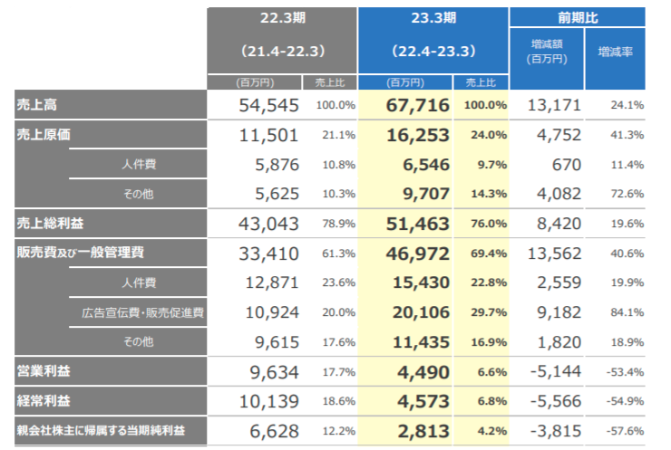 転職サイト エン・ジャパン、最終利益△57%減28.1億円。広告宣伝費の先行投資、人員増強など総費用4割増加